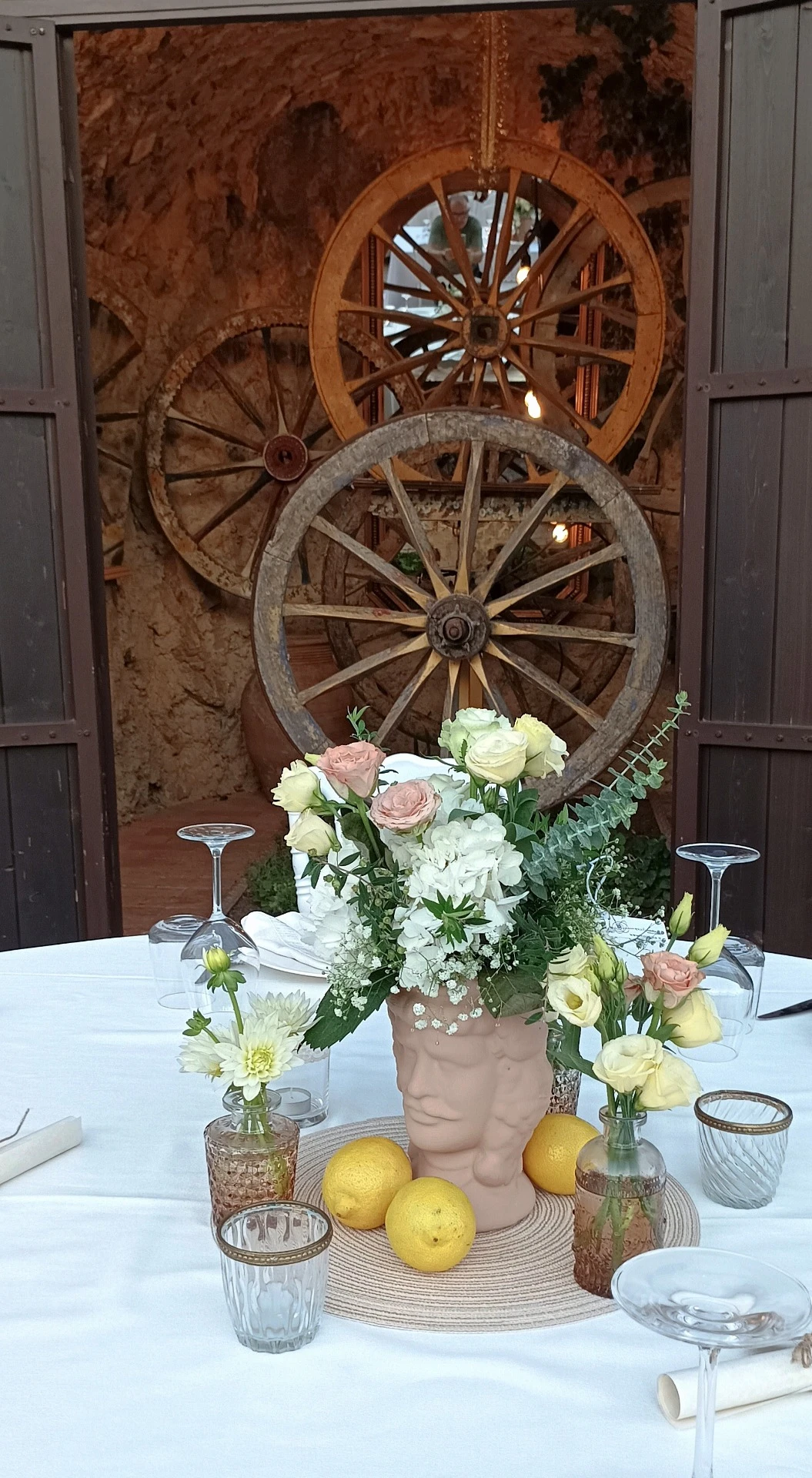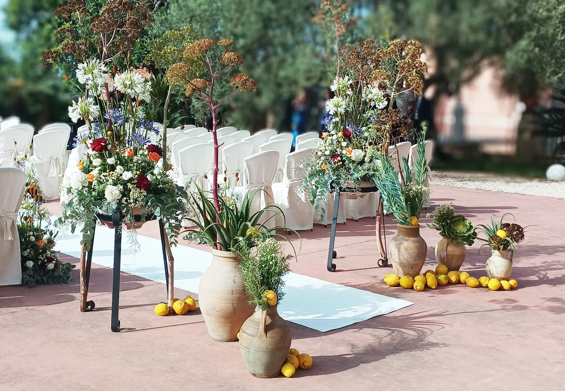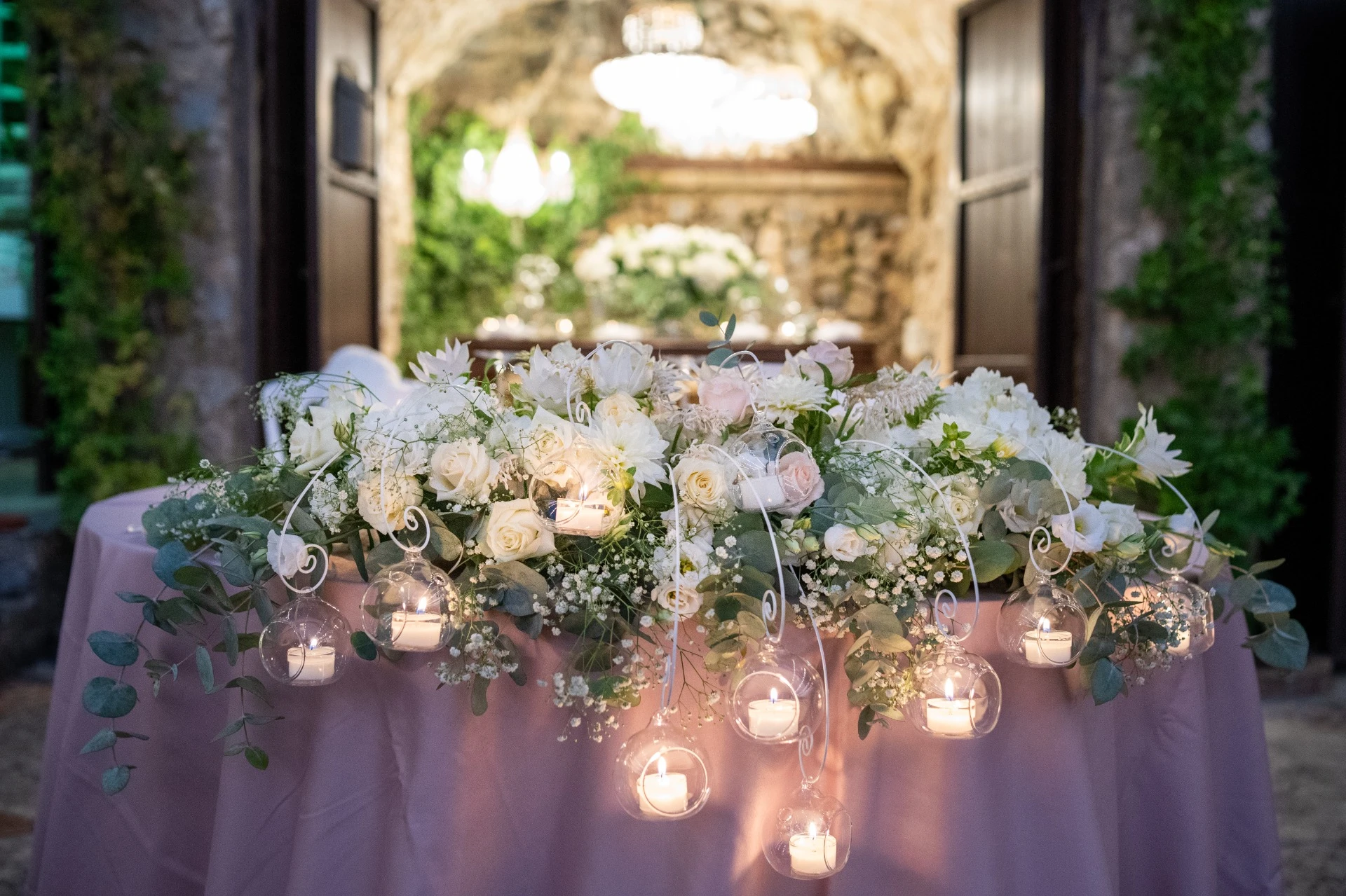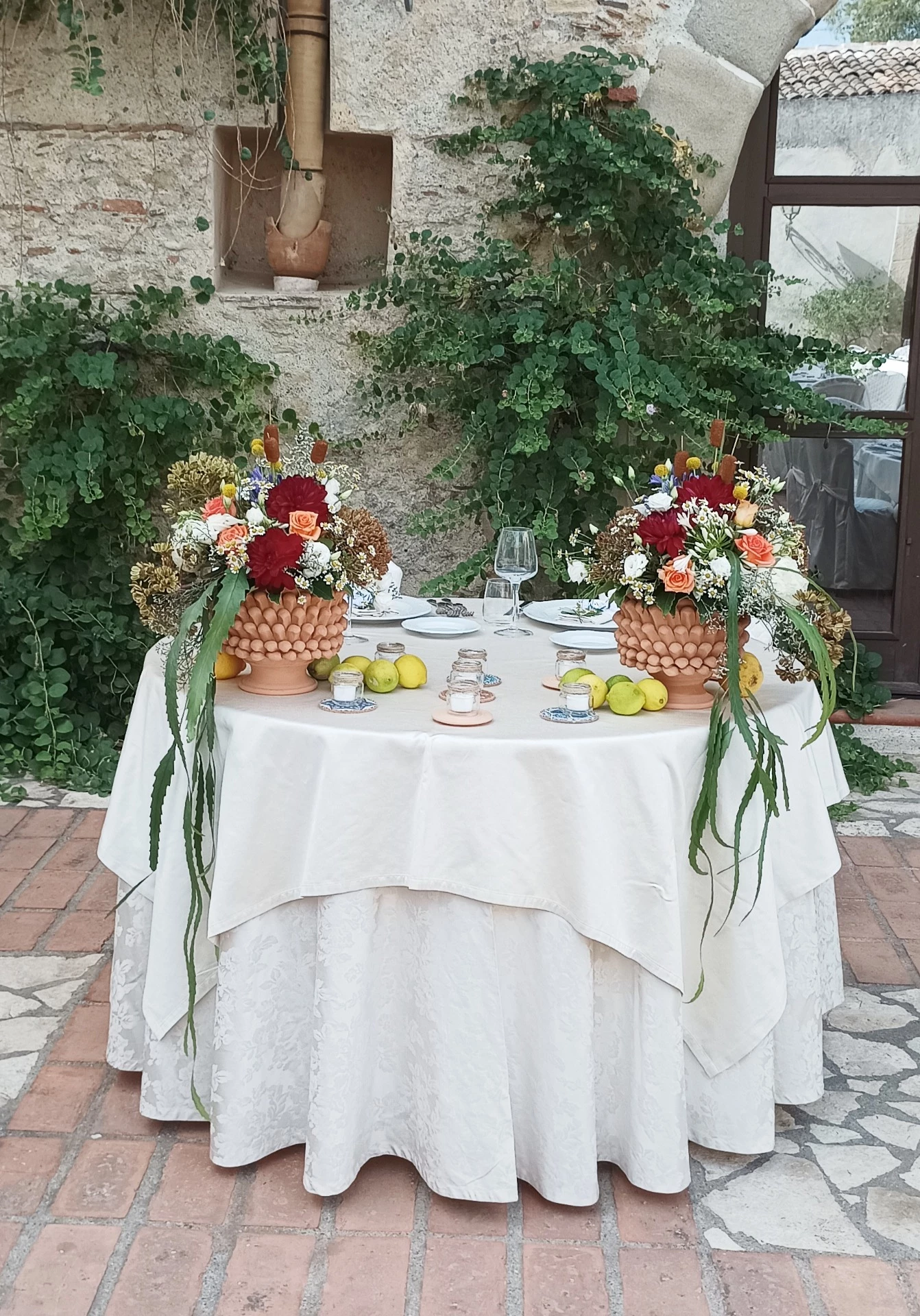 Porta candele, elementi naturali, ceramiche, vasi e oggetti decorativi vengono integrati con gusto negli allestimenti, per dare carattere e identità all’evento. Ogni dettaglio è studiato per dialogare con i fiori e con l’atmosfera generale, contribuendo a creare ambienti coerenti, autentici e ricchi di personalità.