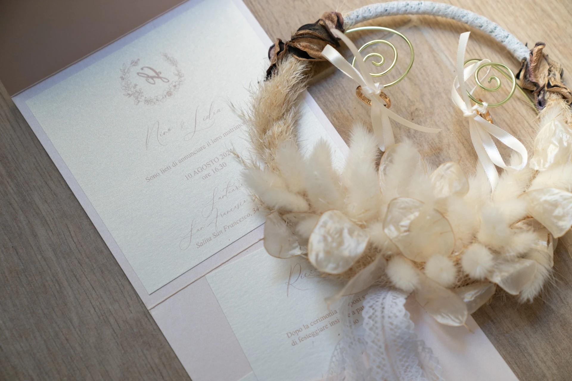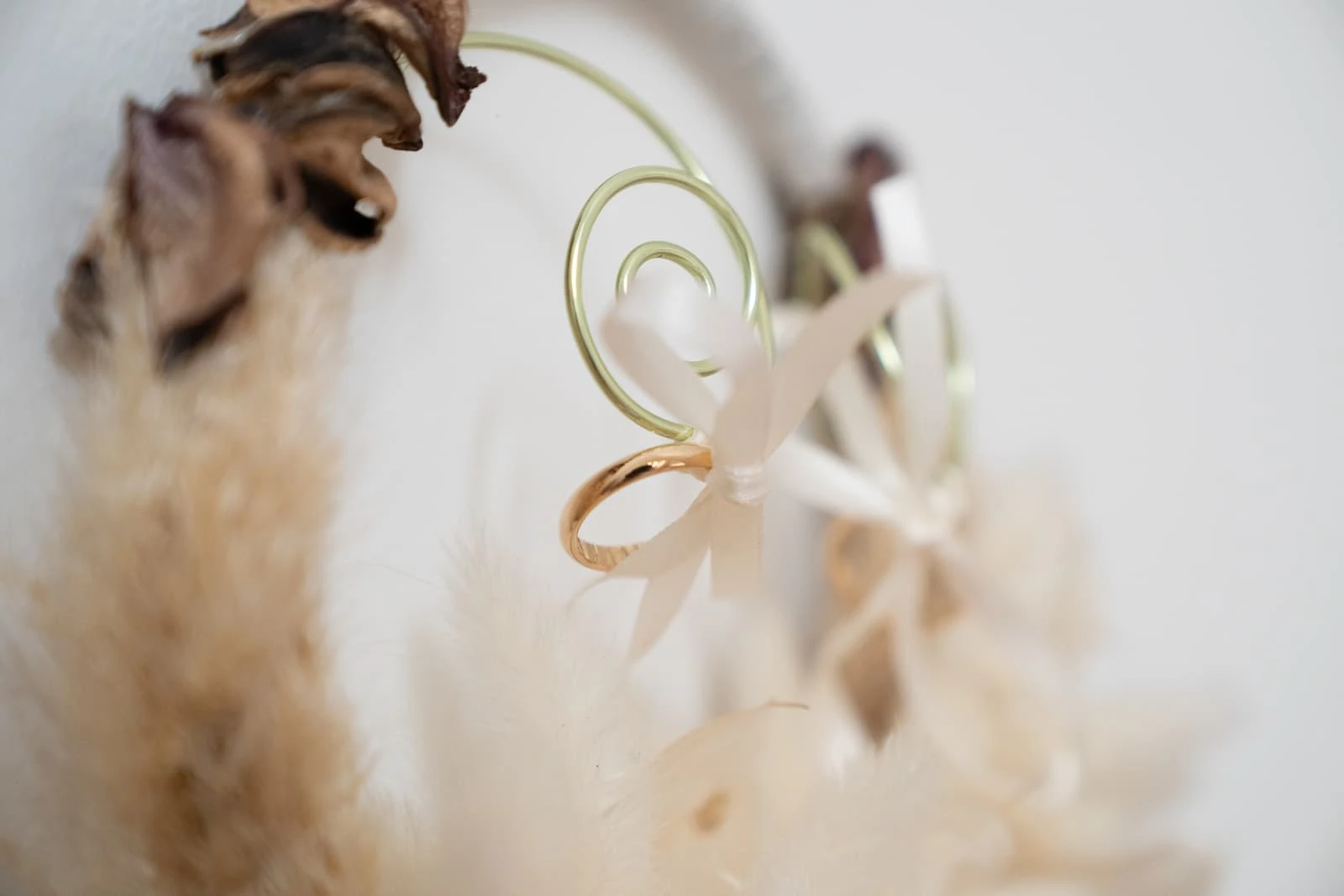 I portafedi nascono per custodire le fedi nuziali fino al momento del sì e diventano parte integrante della cerimonia. Li realizziamo con uno stile essenziale ed elegante, curando materiali, fiori e dettagli in modo che si armonizzino con l’allestimento floreale e con l’atmosfera del matrimonio. Creazioni discrete ma ricche di valore simbolico, pensate per accompagnare uno dei gesti più intensi della giornata.